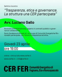 Trasparenza, etica e governance di una CER partecipata.